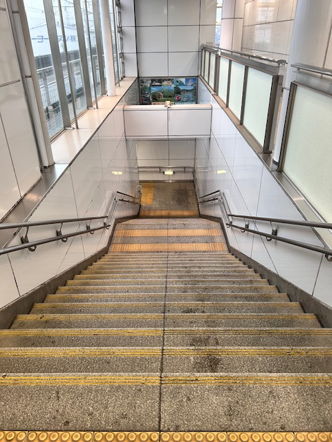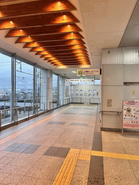 JR二川駅の改札を出ましたら必ず左へ進みまして、北口を目指してエスカレーターまで進んで下さい。